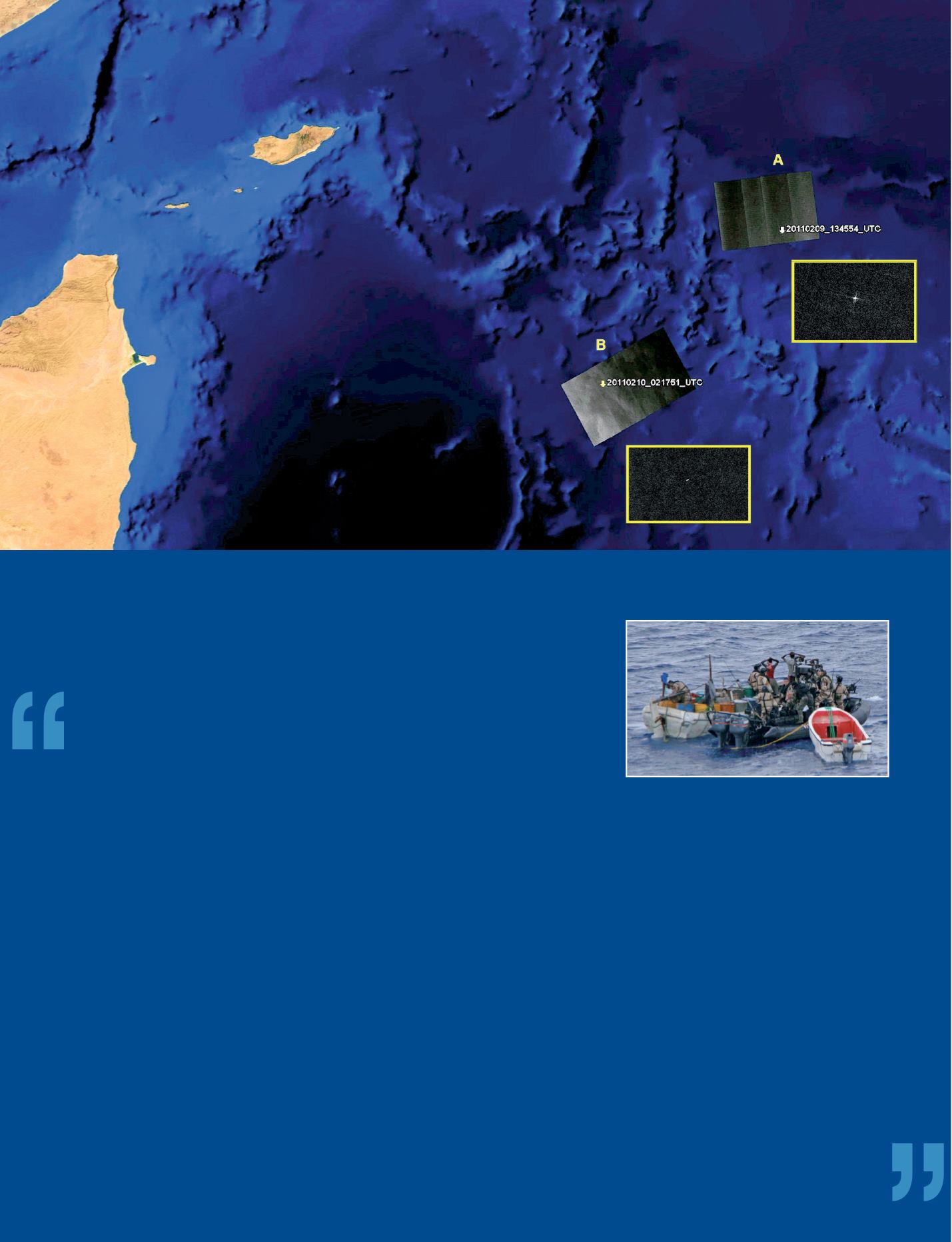 Images satellite du pétrolier italien "Savina Caylyn", saisi par des pirates dans l’océan Indien. L’équipe d’intervention d’urgence de e-GEOS, une société de ASI/Telespazio